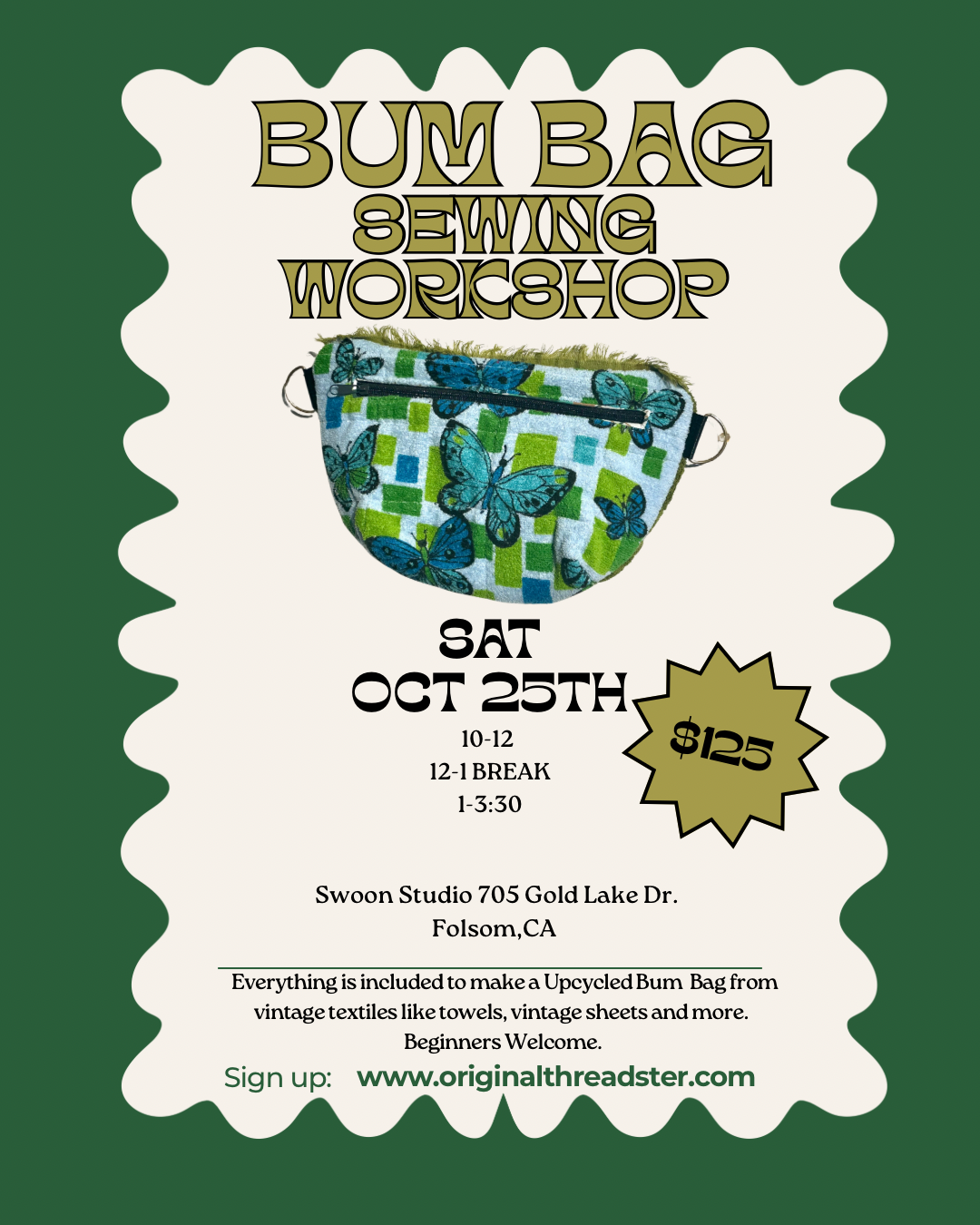 Categories: Shop Pants Bum Bags/Totes Jackets Patterns Shop | Pants | Bum Bags/Totes | Jackets | Patterns | 💕Joy Crossbody Purse Bag Hot Pink Vintage Fabric 70’s $135.00 Add To Cart Added! 🍃Joy Crossbody Purse Bag Vintage Quilted Floral Fabric 70’s $135.00 Add To Cart Added! 💙Joy Crossbody Purse Bag Blue Floral Vintage Barkcloth Fabric 60’s $135.00 Add To Cart Added! 🏵️Bum Bag Vintage Orange Flower Towel Bag $75.00 Add To Cart Added! 💛Bum Bag Vintage Yellow Floral Towel Bag $75.00 Add To Cart Added! Vintage Crewel Embroidery Workshop-Nov 20th 6-8:30 $55.00 Add To Cart Added! Bum Bag Workshop-Sat Oct 25 10-3:30ish @Swoon Studio Folsom $125.00 Add To Cart Added! Criss Cross Towel Tank Top PDF Pattern, Written and Video $16.00 Add to Cart Added! Bum Bag Vintage Blue Floral Barkcloth $75.00 Sold Out Sold Out Added! Custom for Laurie Bum Bag Vintage Blue Rose Needlepoint Bag $85.00 Sold Out Sold Out Added!