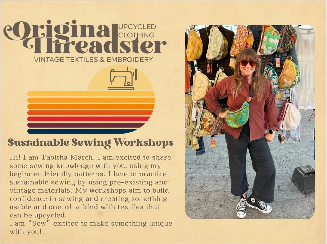 Categories: Shop Pants Bum Bags/Totes Jackets Patterns Shop | Pants | Bum Bags/Totes | Jackets | Patterns | 💓🖤Bum Bag Vintage Pink with White Flowers Towel Bag $75.00 Add To Cart Added! 🍑Bum Bag Vintage Peach with Pink Flowers Towel Bag $75.00 Add To Cart Added! 🤍🌸Bum Bag Vintage Pink and White Flower Towel Bag $75.00 Add To Cart Added! 💙🌹Bum Bag Vintage Blue and Red Flower Towel Bag $75.00 Add To Cart Added! 🌈Bum Bag Vintage Rainbow Quilt Top Bag $75.00 Add To Cart Added! 🧿Bum Bag Vintage Circle Scrappy Quilt Top Bag $75.00 Add To Cart Added! 💜Bum Bag Vintage Quilt Scrappy Top Bag $75.00 Add To Cart Added! 💛Bum Bag Vintage Yellow Floral Towel Bag $75.00 Add To Cart Added! 🏵️Bum Bag Vintage Orange Flower Towel Bag $75.00 Add To Cart Added! 🧡Bum Bag Vintage Patchwork Quilt Top Bag $75.00 Add To Cart Added! 🦉Tote Vintage Upcycled Rug Bag $85.00 Add To Cart Added! 🌸Tote Vintage Pink Flower Upcycled Rug Bag $85.00 Add To Cart Added! 🍃Joy Crossbody Purse Bag Vintage Quilted Floral Fabric 70’s $135.00 Add To Cart Added! 💙Joy Crossbody Purse Bag Blue Floral Vintage Barkcloth Fabric 60’s $135.00 Add To Cart Added! Big Crossbody Purse Bag Vintage Fabric 70’s Geometric $135.00 Add To Cart Added! Vintage Crewel Embroidery Workshop-Nov 20th 6-8:30 $55.00 Add To Cart Added! Bum Bag Workshop-Sun Nov 30 10-3:30ish @Swoon Studio Folsom $125.00 Add To Cart Added! Criss Cross Towel Tank Top PDF Pattern, Written and Video $16.00 Add to Cart Added! Levi’s Blue Jean Sherpa Retro Fabric Embroidered Mushroom Jacket $170.00 Add To Cart Added! Vintage Burnt Orange Quilted Scrappy Retro Fabric Vest Jacket $180.00 Sold Out Sold Out Added! Vintage Blue Quilted Scrappy Retro Fabric Jacket Sale Price: $180.00 Original Price: $200.00 Sold Out Sold Out Added! Original Threadster Gift Card from $50.00 Select Value $75.00 $50.00 Purchase Added! 🐚 Bum Bag Vintage Green Towel Bag $75.00 Sold Out Sold Out Added! 🍄Bum Bag Vintage Mushroom Towel Bag $75.00 Sold Out Sold Out Added! 🌸🤎Bum Bag Vintage Towel Bag $75.00 Sold Out Sold Out Added! 🥑Bum Bag Vintage Funky Green Towel Bag $75.00 Sold Out Sold Out Added! 🌼Bum Bag Vintage Lime Green and White Flower Towel Bag $75.00 Sold Out Sold Out Added! 🔵🌹Bum Bag Vintage Blue Rose Towel Bag $75.00 Sold Out Sold Out Added! ❤️Joy Crossbody Purse Bag Vintage Fabric 70’s Paisley $135.00 Sold Out Sold Out Added! 3 Custom Disney Bags Joy Bag and Bum Bags $255.00 Sold Out Sold Out Added! Custom for Linsey Bum Bag Vintage Bark Cloth Bag $75.00 Sold Out Sold Out Added! Custom Tree Skirt Evan and Michael $100.00 Add To Cart Added! 🤎Bum Bag Vintage Brown Green Needlepoint Bag $85.00 Sold Out Sold Out Added! Private Sewing Workshop-Harrison $325.00 Add To Cart Added!